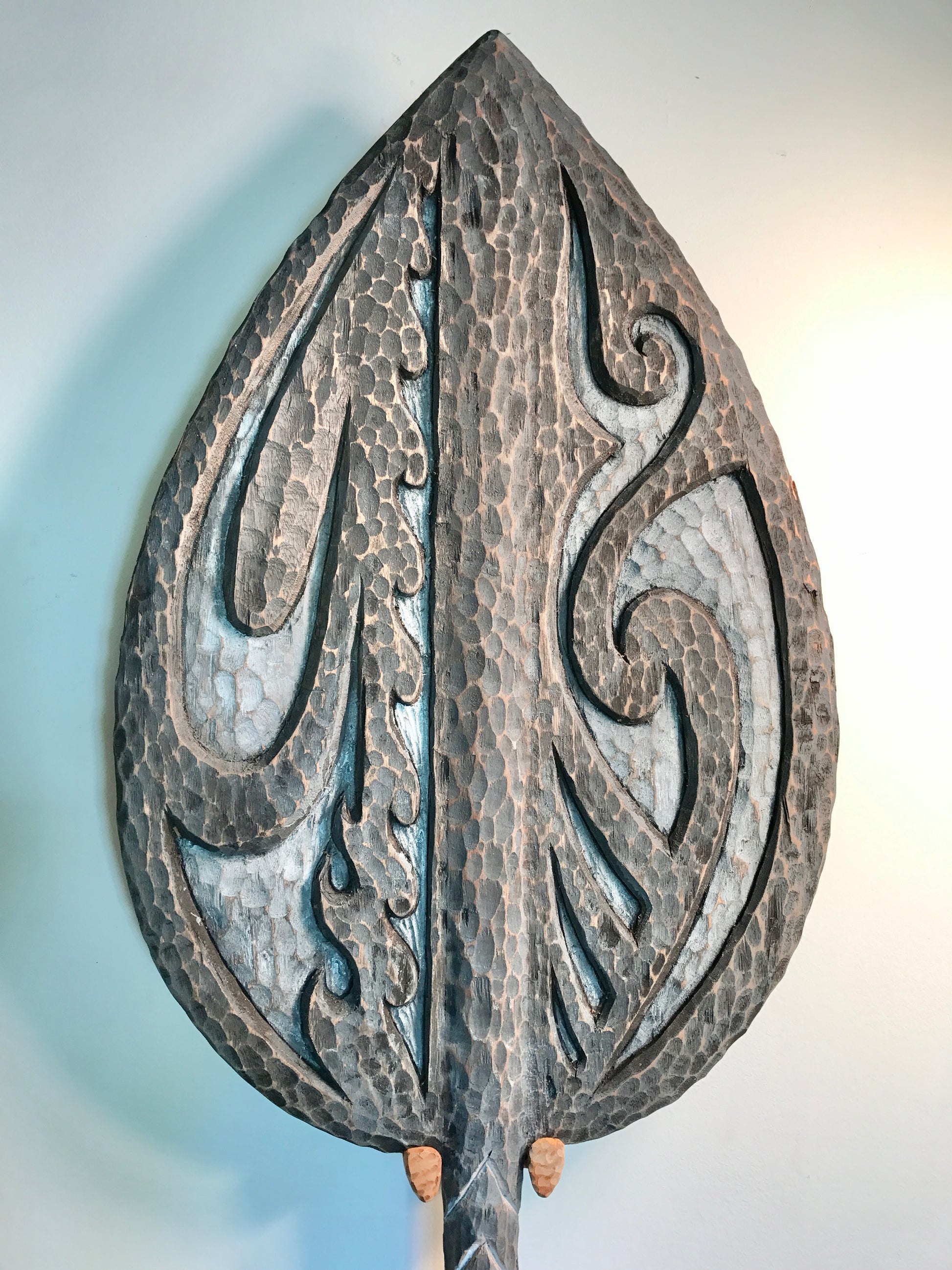 Wai aka means water showing a reflection in Hawaiian. This paddle was inspired by the various reflections of the ocean; calm, choppy and clean waves all dance across this sculptural paddle.